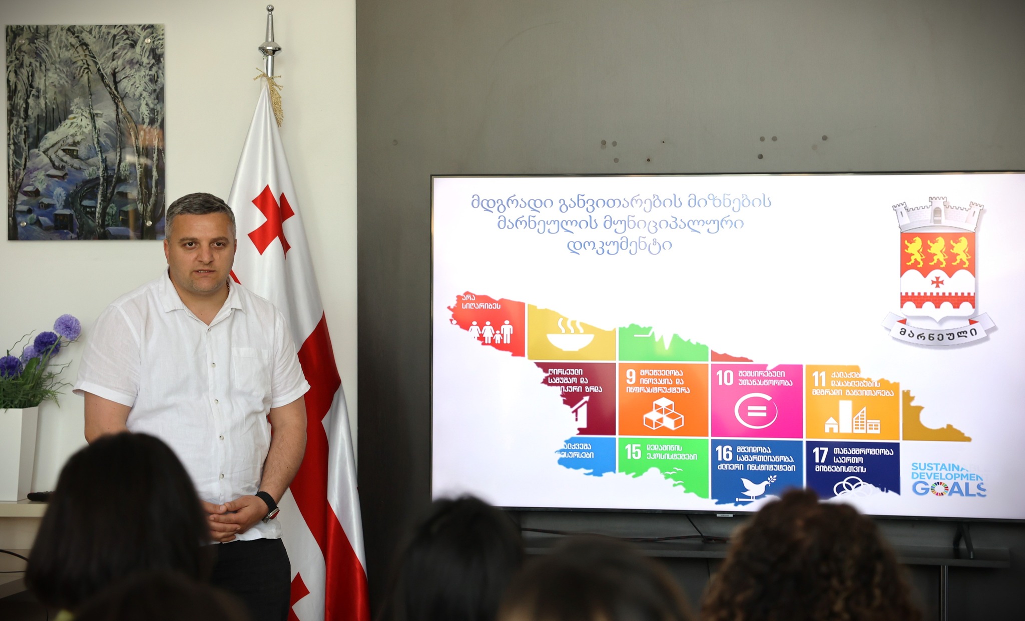 შეხვედრაზე, მარნეულის მუნიციპალიტეტის მერიის ადმინისტრაციული სამსახურის უფროსმა მამუკა შუბითიძემ, დამსწრეებს წარუდგინა პრეზენტაცია, რომელიც ჩვენ წინაშე არსებულ თანამედროვე გლობალურ გამოწვევებს ეხება, ესენია: სიღარიბე, უთანასწორობა, კეთილდღეობა, მშვიდობა, სამართლიანობა, კლიმატი და ეკოლოგია.